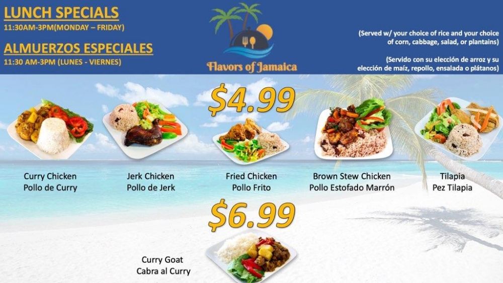 Introducing Flavors of Jamaica, a Caribbean restaurant located in Kissimmee, FL, that offers a range of authentic Jamaican dishes. From breakfast options like Ackee and Saltfish to traditional soups including Chicken Soup and Conch Soup, the menu is filled with delicious and flavorful choices. The restaurant also provides a Breakfast Special featuring Beef Liver for those looking for a unique and satisfying meal. With offerings for delivery, takeout, and catering, Flavors of Jamaica aims to bring the taste of Jamaica to your table. The classy ambiance, wheelchair accessibility, and amenities like private lot parking and TV make dining here a pleasant experience. Don't miss out on the Happy Hour specials and the selection of beer and wine available. Experience the taste of Jamaica at Flavors of Jamaica today!